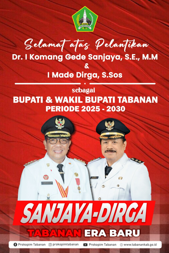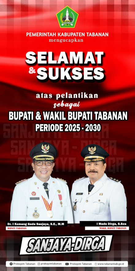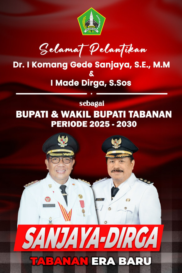 Selamat dan Sukses atas pelantikan Bapak Dr. I Komang Gede Sanjaya, S.E.,M.M slot777 dan I Made Dirga, S.Sos sebagai Bupati dan Wakil Bupati Tabanan Periode 2023 sampai dengan 2030